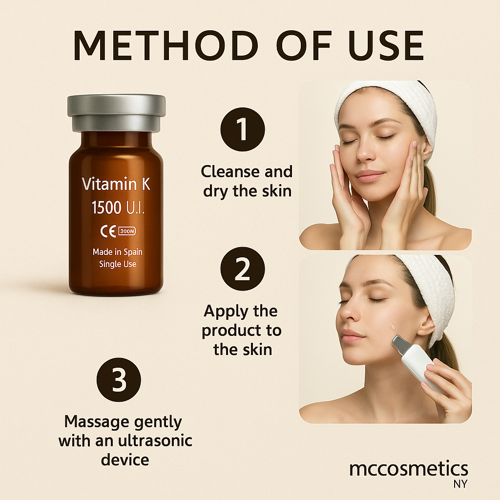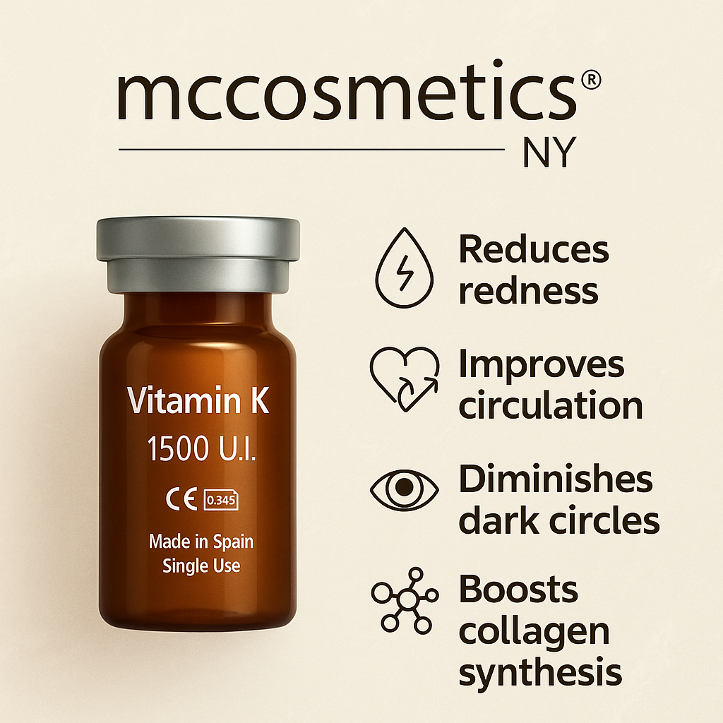 Regular price $ 388.00MCCosmetics NY Vitamin K is a professional-use cosmetic solution formulated with Vitamin K2 (Menaquinone-4) to help improve the appearance of skin tone and balance. It supports a more even, radiant-looking complexion while helping reduce the look of redness for a visibly refreshed and luminous finish.