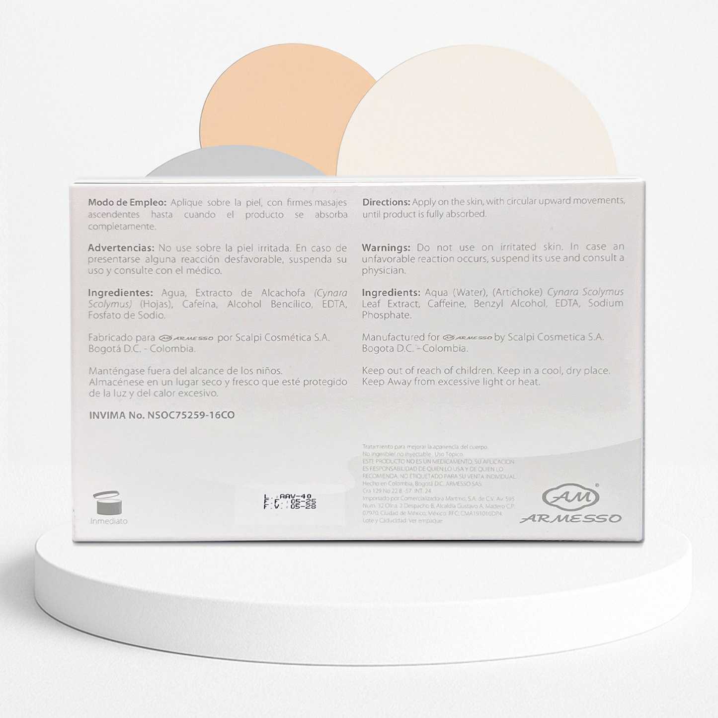 Regular price $ 30.00AM ARMESSO Artichoke Plus Serum is a professional-use cosmetic solution developed to support body care and contouring protocols. Formulated with 2% Artichoke Extract and 75mg of Caffeine, it helps improve the appearance of skin texture and promotes a smoother, more refined-looking surface. Ideal as the first step in professional body treatments, this serum complements other AM ARMESSO products for enhanced cosmetic results. Each box includes five sterile 10ml vials for topical application.